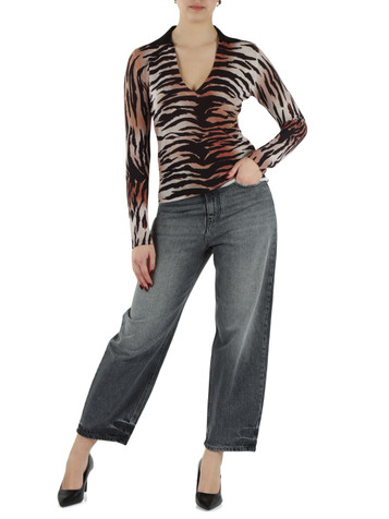 Optionen wählen PINKO Polo Derby EROSIONE in Baumwollmischung Körpergröße des Models (cm): 175Getragene Größe: Soffener KragenV-AusschnittLangärmligPatch-Logo auf der RückseiteAnimal-Print69%COTTON31%NYLON MSRP: €245,00